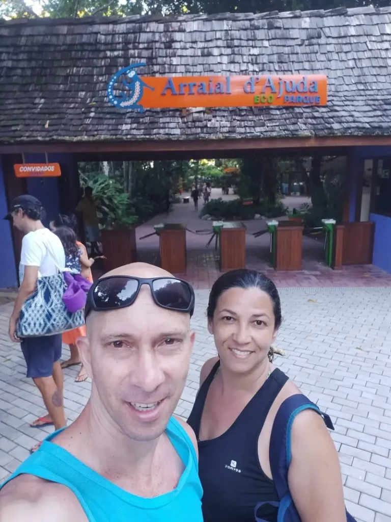 Pegamos a balsa até Arraial d’Ajuda. Passamos o dia no Eco Parque, um parque aquático com vista para o mar. À tarde, caminhamos pelo centrinho e provamos uma moqueca deliciosa.